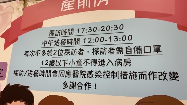 然後我就跟姑娘去檢查宮頸(冇想像中痛,係有少少唔舒服)宮頸已變軟。由於第一胎普遍都係耐,姑娘安排我入住產前房等待,此時就要同老公暫時分開。