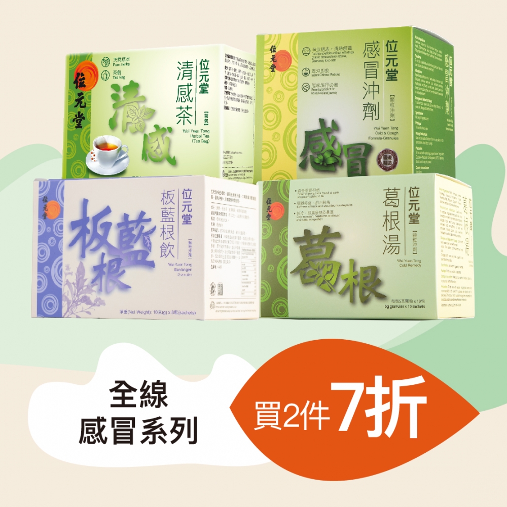 位元堂感冒系列以純天然成分製成,無睡意及副作用,六歲或以上小朋友就可服用。以「銀翹散」改良而成的位元堂感冒沖劑有效舒緩各種頭痛發熱、流鼻水、喉嚨腫痛、肌肉酸痛等感冒症狀;而位元堂葛根湯則可紓緩頭、肩背疼痛等症狀;感冒期間,媽媽們也許會食慾不振,忽冷忽熱,此時就可以服用依據著名漢藥配方而製的位元堂小柴胡湯,當中柴胡及黃芩等成分能紓緩感冒後期的不適症狀。