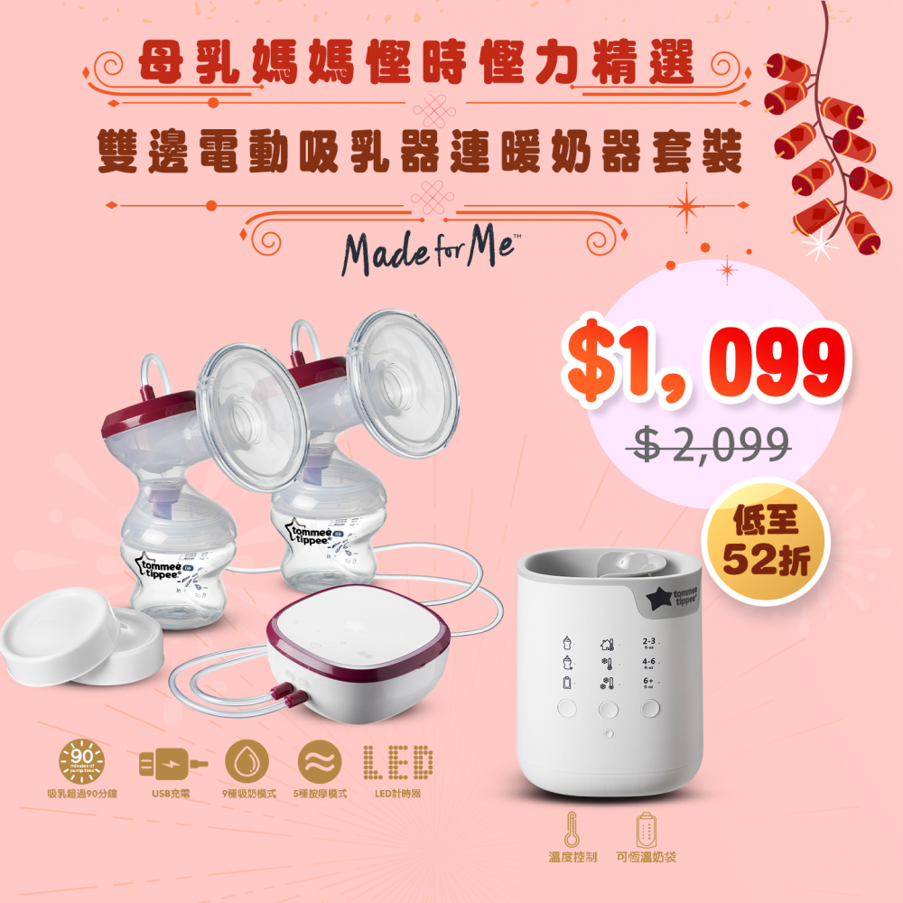 新年精選套裝 1:Made for Me雙邊電動吸乳器連暖奶器套裝