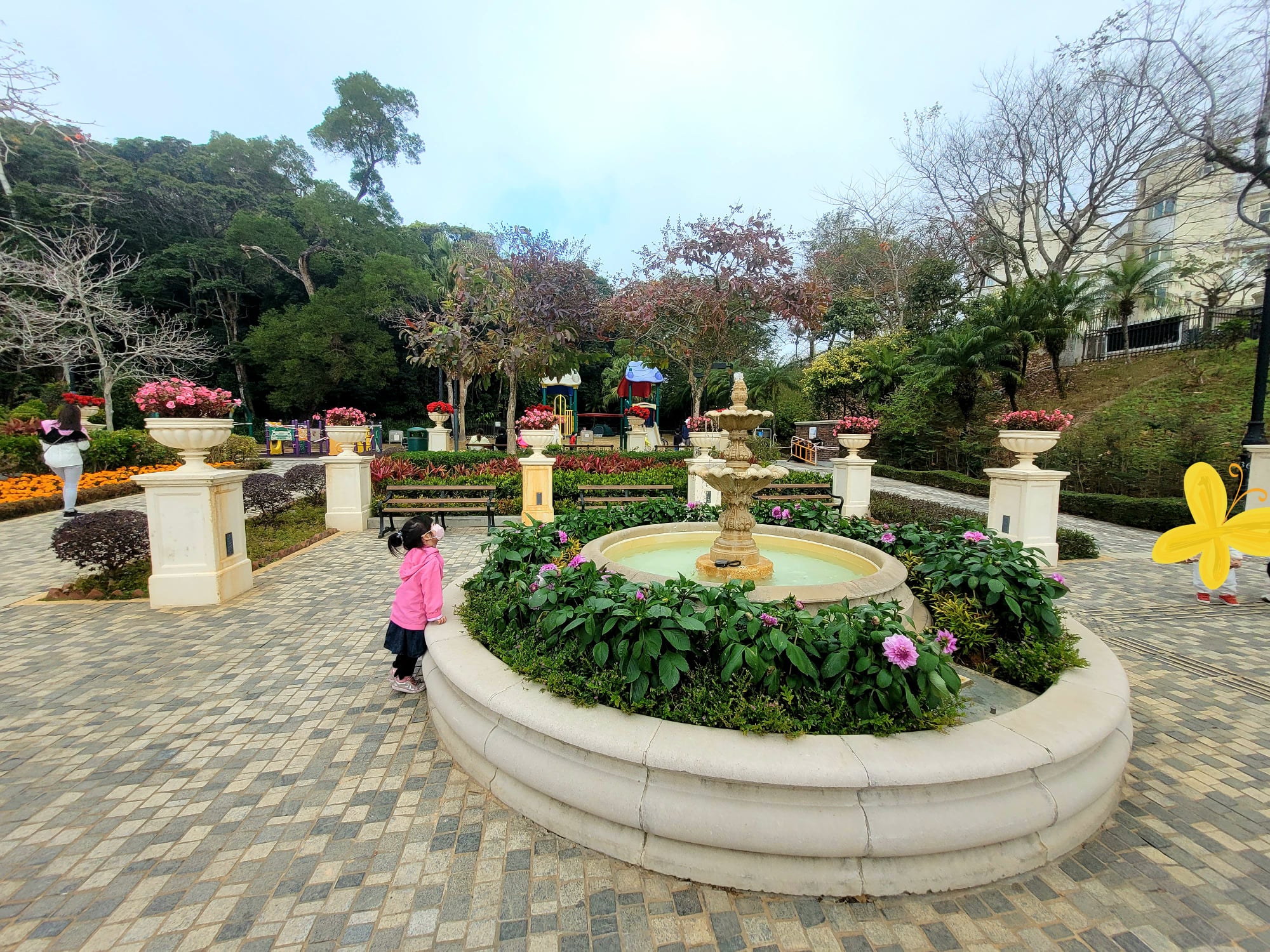 再行上去就是 山頂花園,同樣地也是充滿歐陸情懷的涼亭,而且仲有 靚靚花牆,唔使去cafe打卡啦。果度好靚,平時好多人黎影婚紗相和拍劇。(老公在十多年前已經帶我黎過,果然是把妹的高手<說笑>)