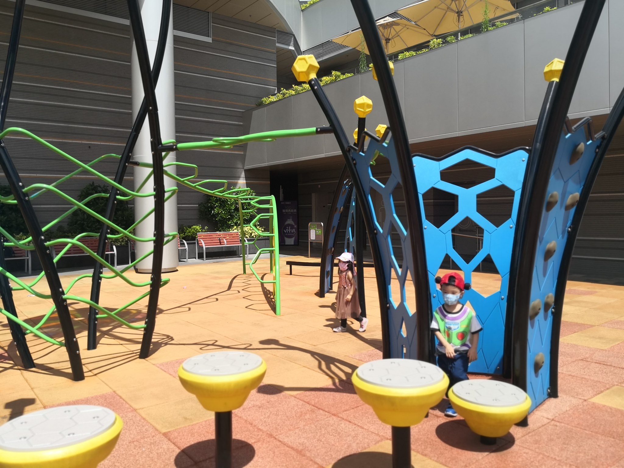 除咗柯士甸山遊樂場外,仲有山頂廣場遊樂場。今次冇去玩,但上年暑假來時有玩啊~唔錯唔錯~而且側邊有櫈俾我這老人家坐坐。