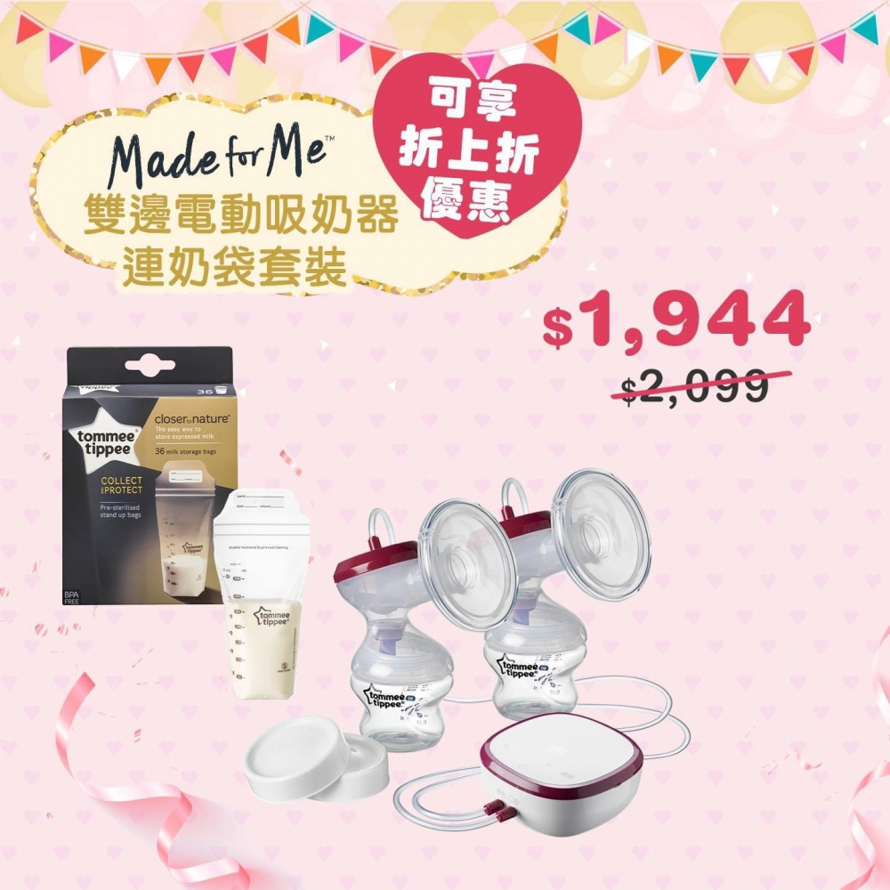 Made for Me 雙邊電動吸奶器連奶袋套裝 (原價$2,099 特價$1,994) https://bit.ly/3u0LbzL