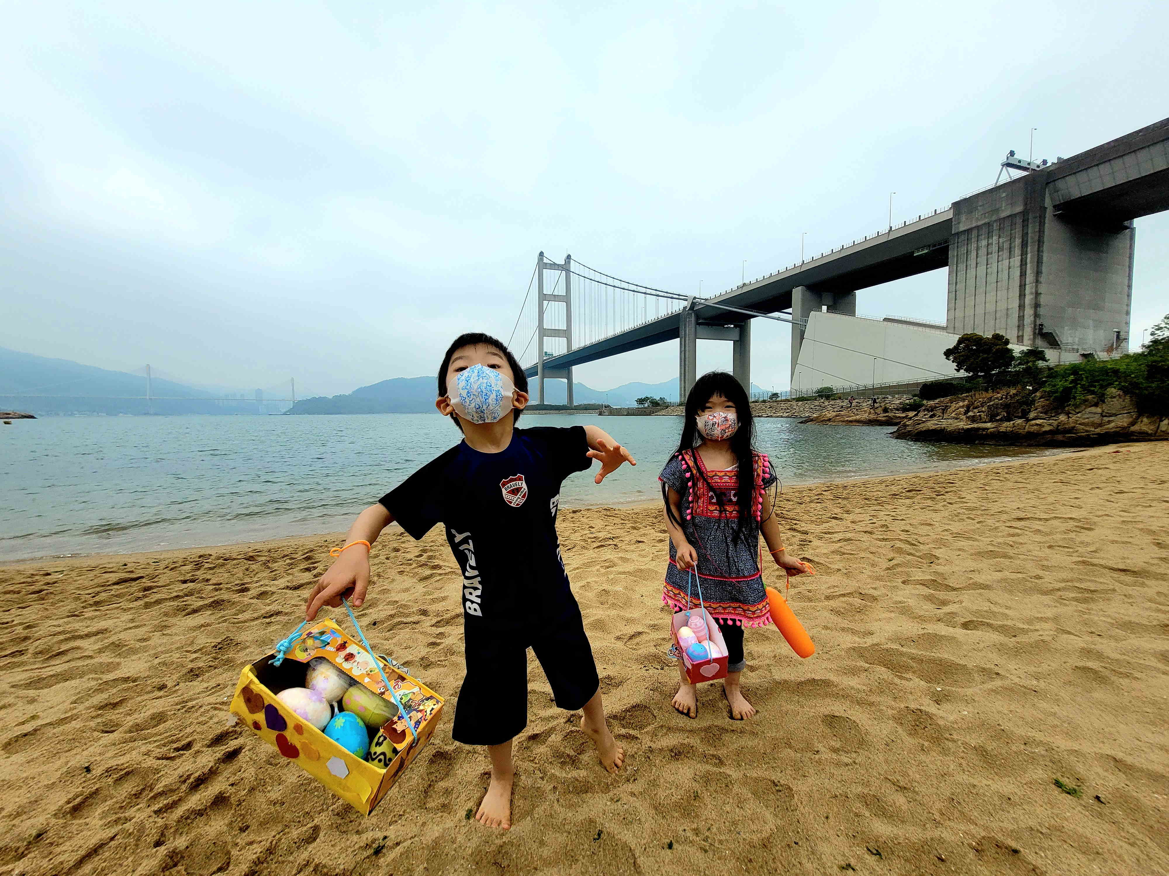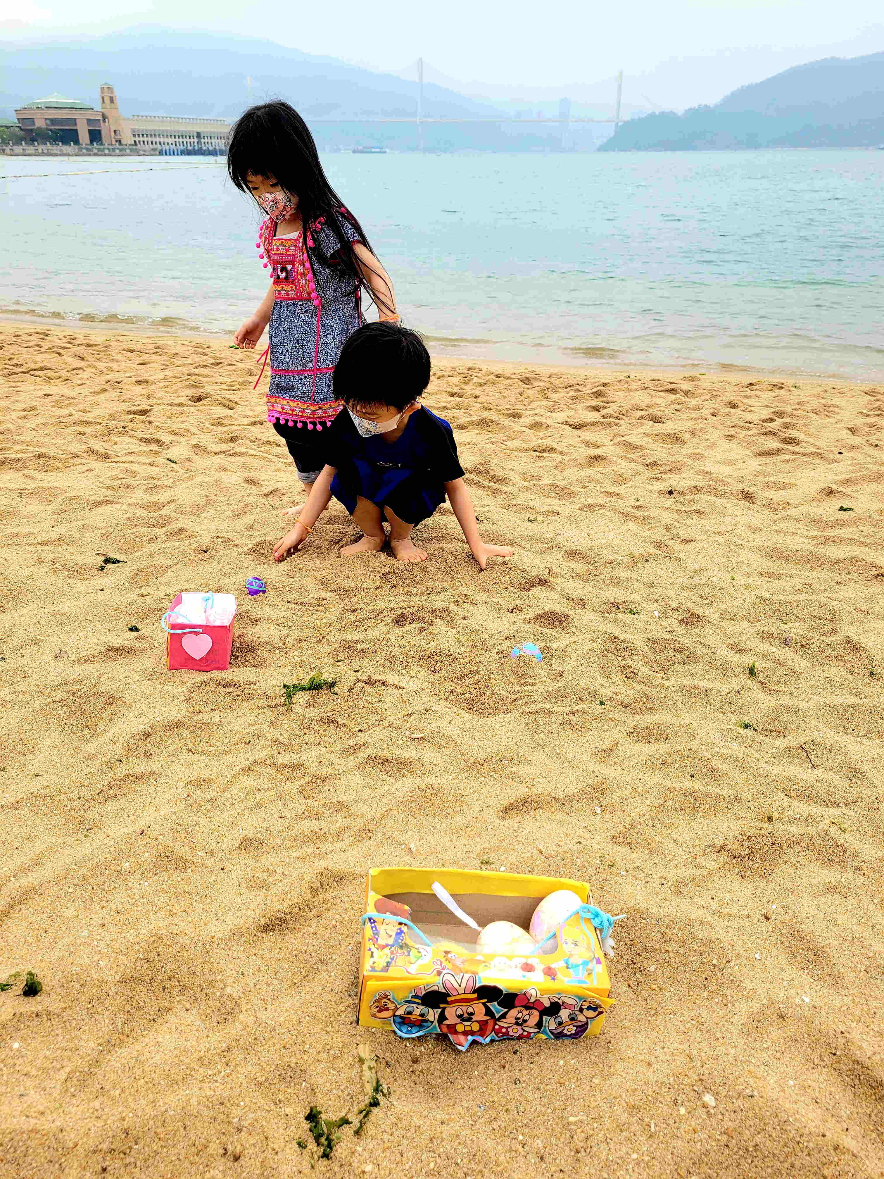 小朋友第一次喺泳灘玩egg hunt ,超興奮~