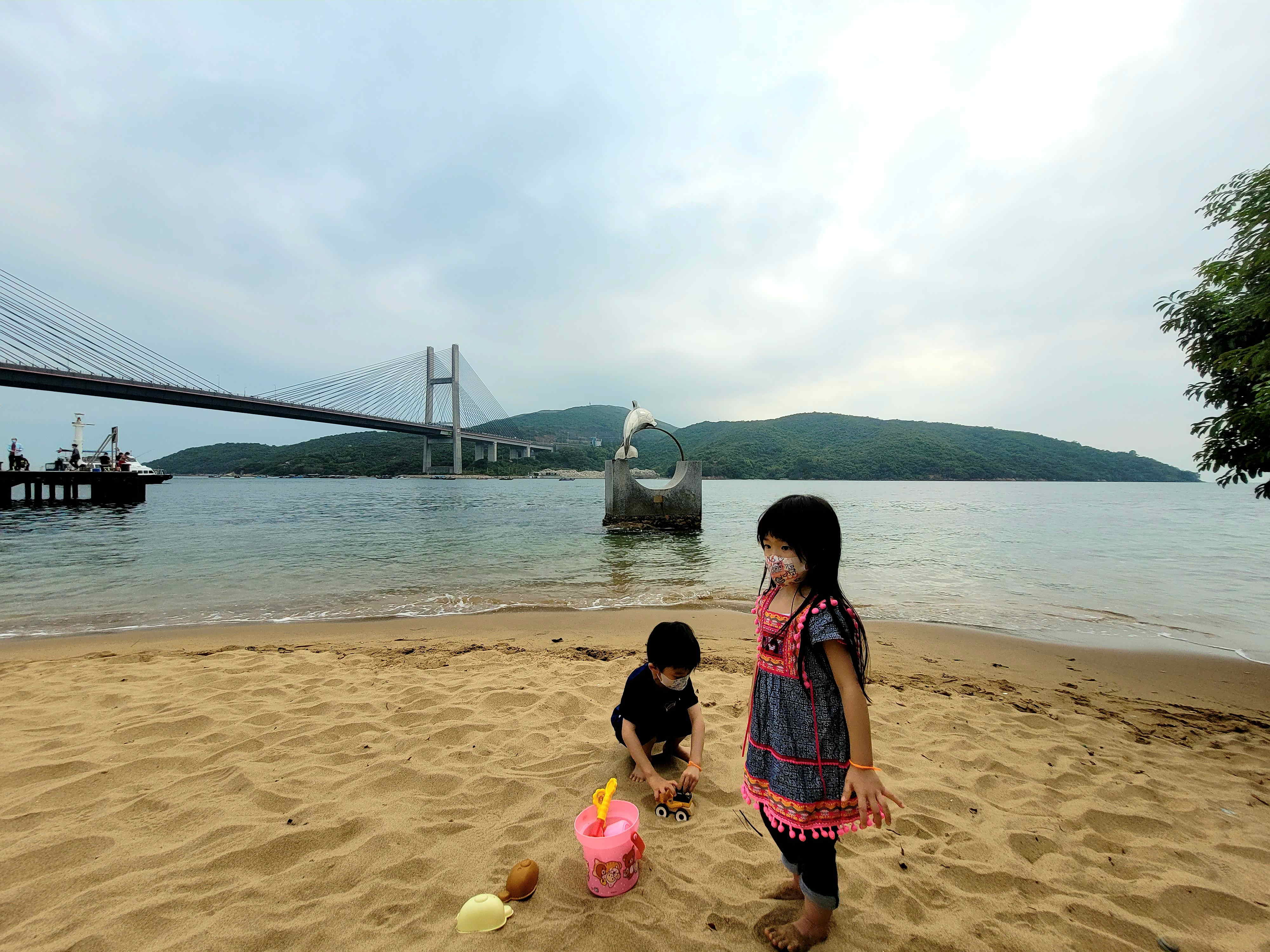 而 馬灣公眾碼頭 旁有個 真正嘅 隱世沙灘 ,冇乜人,小朋友堆堆沙,玩得非常開心。