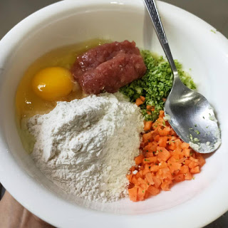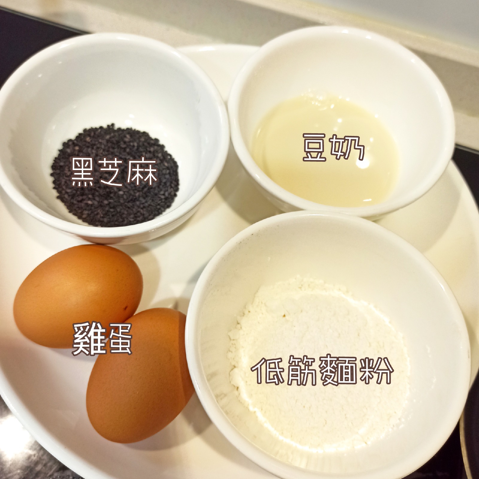 1. 雞蛋,豆奶,麵粉混合,攪拌至沒粒狀
