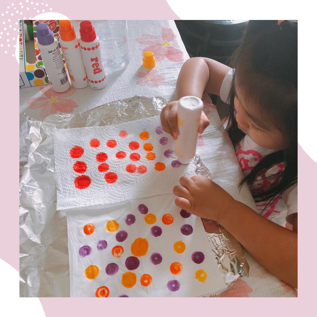 這玩顏色方法,我女兒很喜歡,大概不用坐定定塗很久顏色,哈哈!因此很適合幼兒培養對顏色有興趣的時候玩。