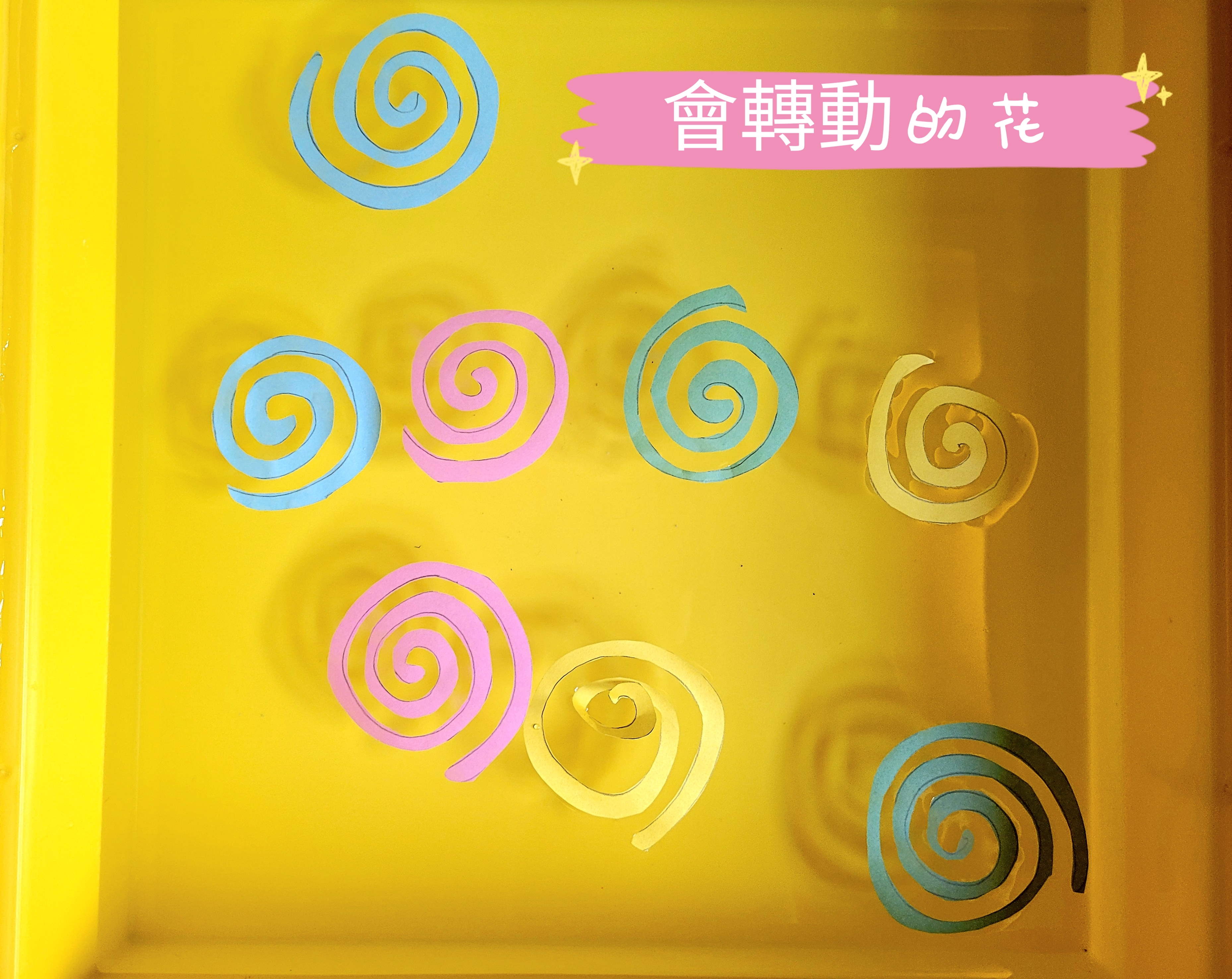 3) 把紙花放在水面上