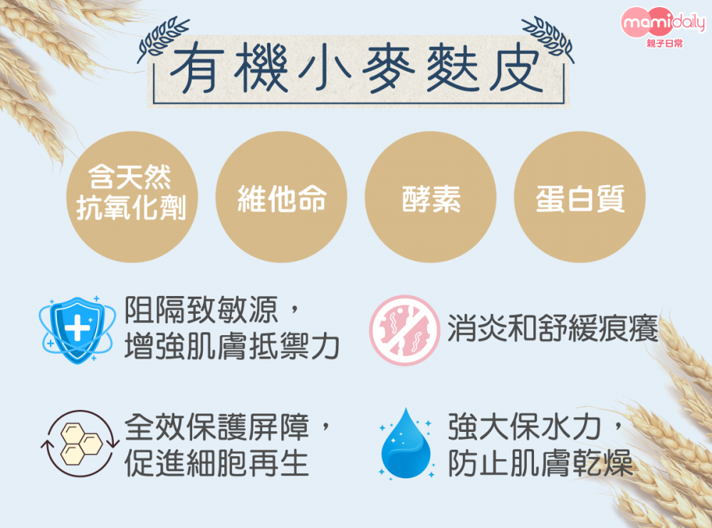 獨特有效成分- 有機小麥麩皮 (Wheat Bran)提取物