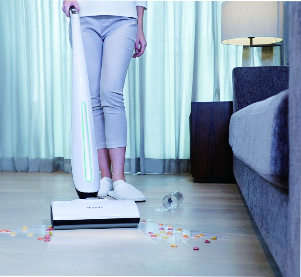「HIZERO仿生4合1潔地機」通過獨特的水流系統,由清潔滾輪接觸地板時可以運用機內自設淨水箱中的清水,實時清潔地板,回復地板潔淨!以一升水、0.01kWh電能及8分鐘時間即可打理100平方米地板(數據來自HIZERO實驗室),多種硬質地面都可使用,包括:瓷磚、木地板、層壓板等。