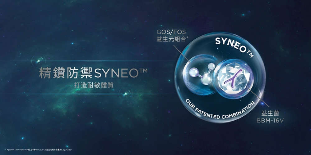 ^精鑽耐敏組合由紐廸希亞科研團隊研發,透過專利SYNEO™及嶄新水解工藝和技術,支持鍛鍊免疫系統對膳食蛋白的口服耐受性。 SYNEO™已在歐洲及多國獲得專利。