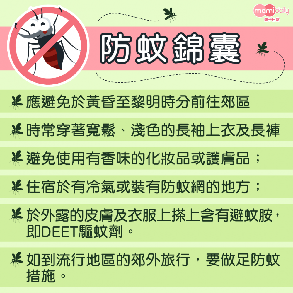 最重要及最佳預防日本腦炎的方法是避免被蚊子叮咬!
