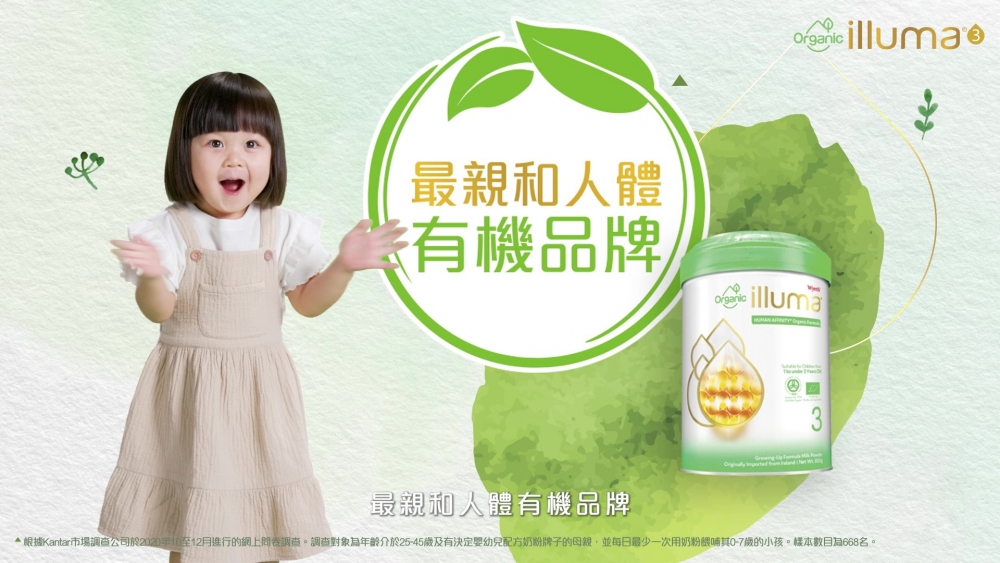 憑藉優質有機配方, ILLUMA® Organic更獲得最多受訪媽媽認同為最親和人體有機品牌▲