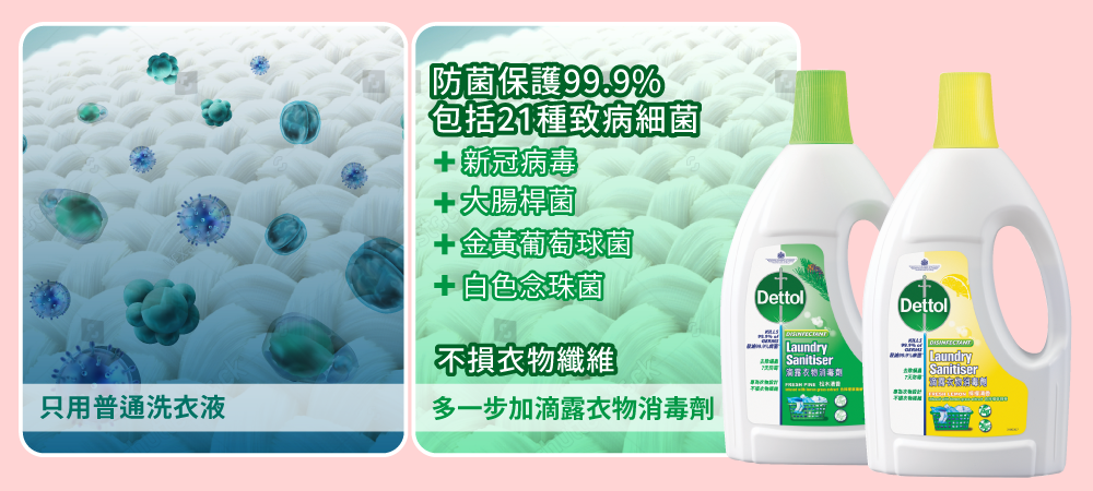 媽媽首先要清楚知道洗衣液是用來洗衣物的汙漬,而不是用來殺菌!也就是說病菌在洗衣液下,依舊會活得好好的。如果衣物沒有正確消毒,老人和兒童被感染的風險更高。因此美國醫學專家,也建議正確洗衣服要用熱水加漂白水,才能完全消滅衣服上的病菌。可是長期使用漂白水卻可能會破壞衣物纖維,用熱水更會讓衣服「縮水」,而一般嘅洗衣液其實未必可以清除所有病菌,所以洗衫要做多一步,加入衣物消毒劑!