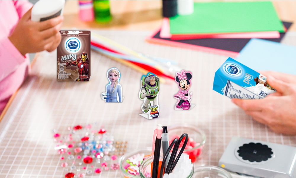 只要把喝完的子母®繽 FUN 系列牛奶飲品或者子母® DHA 牛奶飲品包裝盒洗乾淨後,把包裝上的卡通人物剪成卡片,DIY 成為小朋友專屬棋子,玩大富翁或飛行棋時拿出來用,自然玩得更投入!