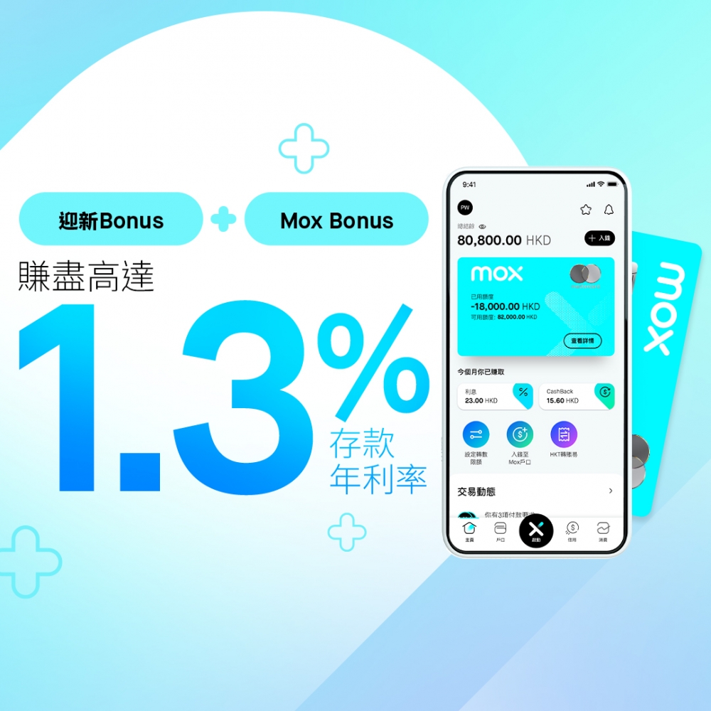 *受Mox Bonus推廣條款及細則,及迎新Bonus推廣條款及細則約束。