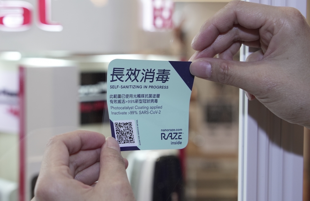 傳統光觸媒需要紫外光才能激發及起作用﹐RAZE用超過10年時間做科研,研發出納米級光觸媒殺菌技術,分子比傳統光觸媒細5倍,更易進入物件表面的細微罅隙,在物體表面上形成一種長效結構塗層,接觸任何光源後(如日光、室內自然光、光管、燈膽) 亦有同樣的效果,可以激活納米光觸媒粒子,持續殺滅包括新型冠狀病毒及細菌等病原體超過99%^。
