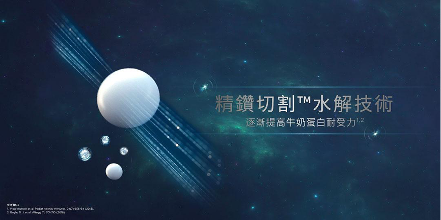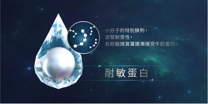 配合精鑽切割™水解蛋白#技術,將牛奶蛋白切細成耐敏蛋白組合,讓寶寶更易適應牛奶蛋白1 2,雙重鍛鍊,打好長遠免疫基礎,減低小敏感⁺風險3 4 5。