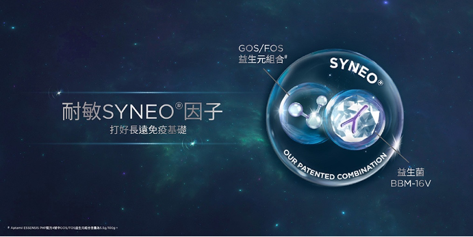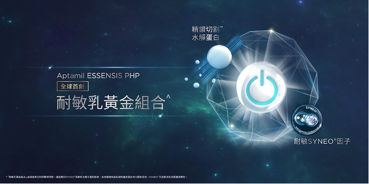 ^「耐敏乳黃金組合」由紐廸希亞科研團隊研發,透過專利SYNEO®及嶄新水解工藝和技術,支持鍛鍊免疫系統對膳食蛋白的口服耐受性。SYNEO®已在歐洲及多國獲得專利。
