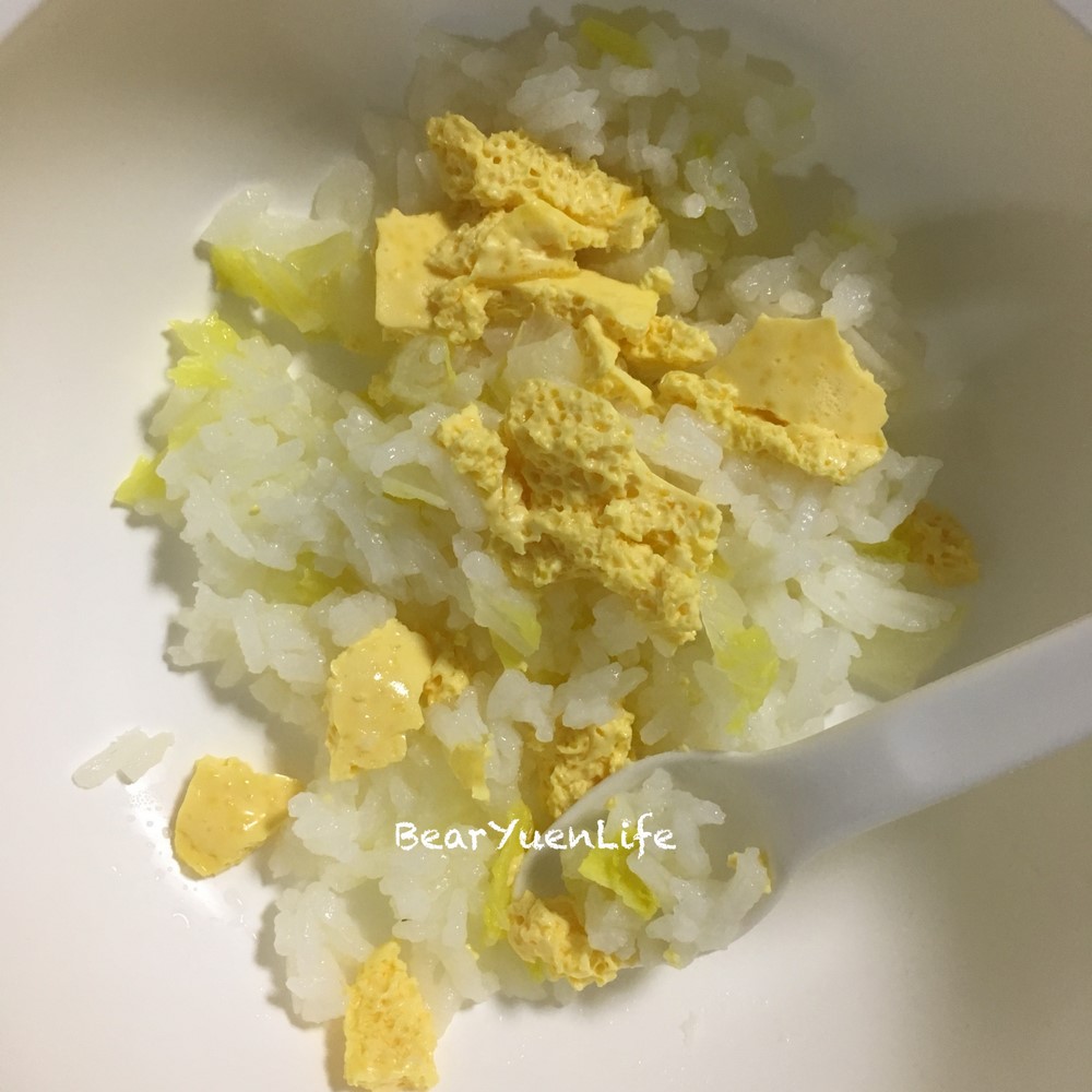 丸bb就太細個未食得。我都其實整咗個美味菜飯同蒸水蛋佢食,不過呢個厭菜寶寶真係一食菜就即吐(唔知點解咁醒目),又唔喜愛水蛋質地,結果又食得少量白飯