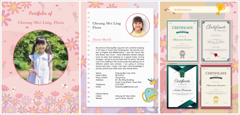 不少家長為表誠意都會花上心思親力親為,與子女一起做小手作,創作「手製履歷表」。然而,很多時候設計茫無頭緒,且製作過程需用上大量工具來處理,更會耗用不少時間及精力。當代社會「數碼化」盛行,連創作小朋友的履歷表都可數碼化,不但外觀更美侖美奐,且處理起來更得心應手。FOTOMAX快圖美便為家長及莘莘學子提供了一站式簡易步驟,如家長有很多想法卻不知從哪裡開始,便可輕鬆地跟著簡單步驟來進行製作。