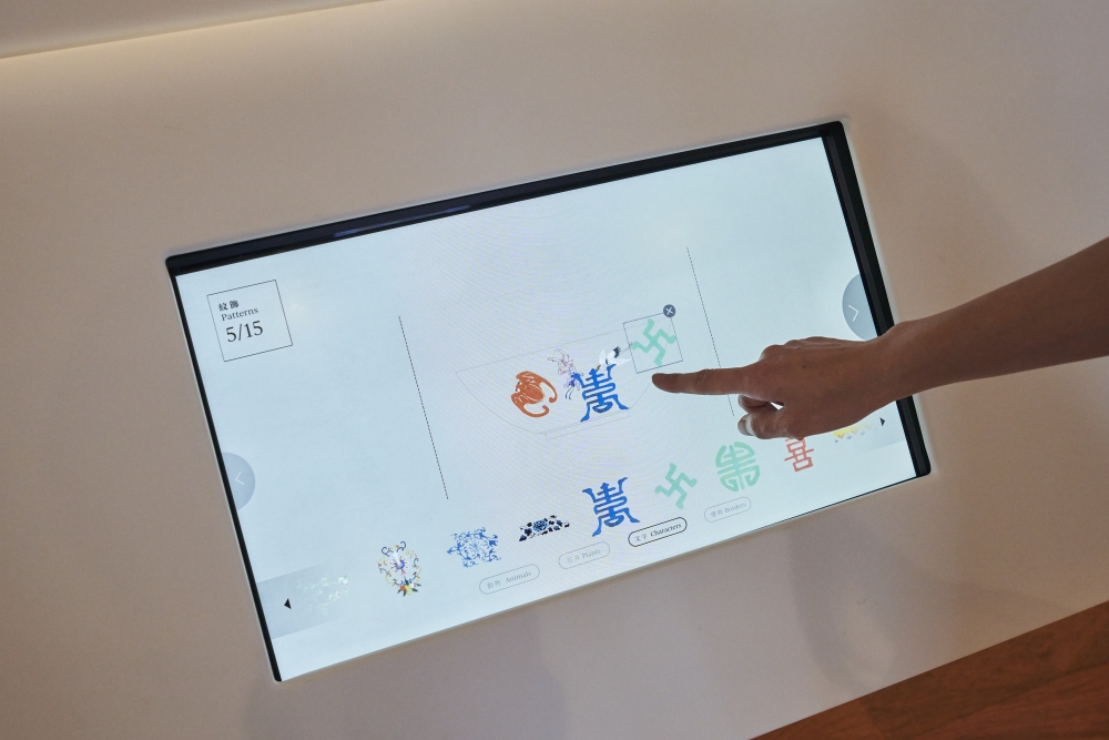展廳3展示多件中國歷代的陶瓷作品,款式及顏色千變萬化。大開眼界過後,小朋友可以與爸爸媽媽動手玩遊戲,觸控屏幕選擇心儀的瓷器形狀、釉色及紋飾,設計獨具個人風格的陶瓷。