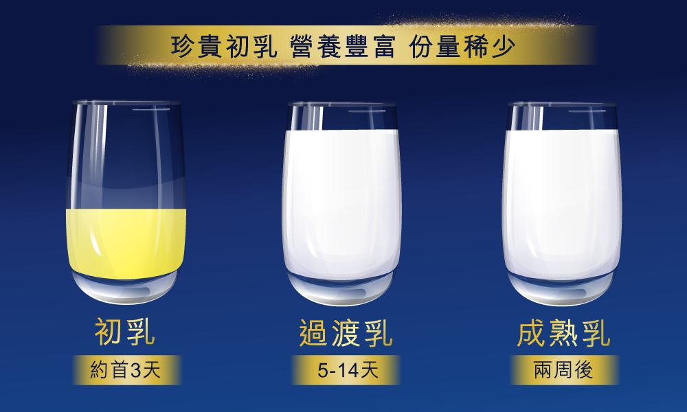 母乳主要分為3個階段:初乳、過渡乳及成熟乳。媽媽誕下寶寶之後約首3天分泌的乳汁稱為初乳,初乳分量少,質地濃稠,呈淡黃色;分娩後5-14天,擠出來的乳汁變白,分量較之前多,質地較初乳稀,屬過渡乳。分娩後兩周後,母乳呈現奶白色,就是成熟乳。母乳含有豐富蛋白質、脂肪、乳糖及微量元素,為寶寶提供所需營養,促進成長發育。3個階段中,以初乳的蛋白質含量較多,初乳中較高的蛋白質與非常高的乳鐵蛋白和SIgA有關,加上母乳分量少,供應期有限,因此相當珍貴。