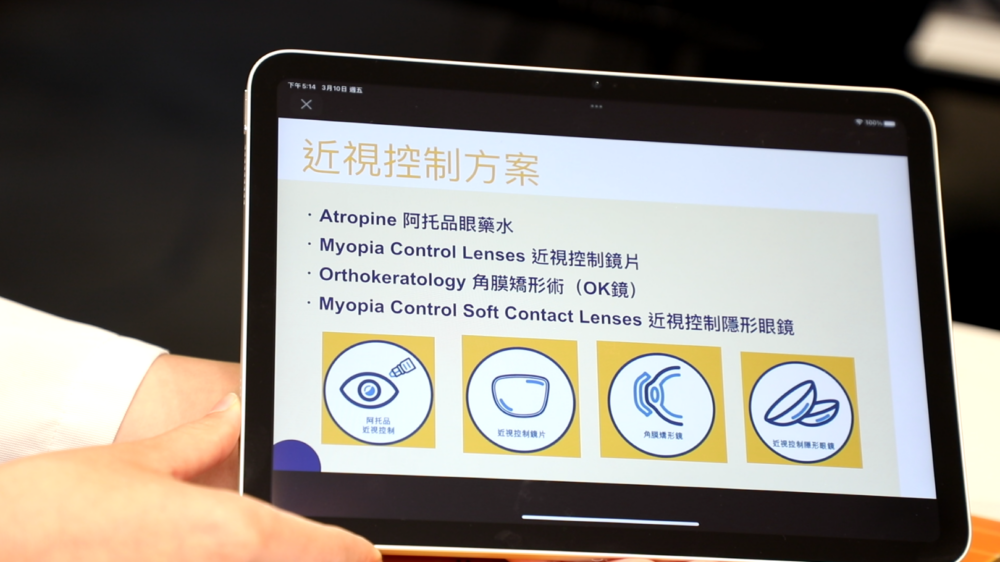 現時研究顯示有4種方法可有效控制近視,包括阿托品眼藥水,角膜矯形術(俗稱OK鏡),近視控制鏡片及近視控制隱形眼鏡。