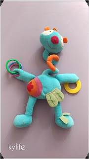 這類型的公仔我是超推薦大家要買給自己BB!我手上這款有牙膠及一個個不同顏色的圈圈,視覺上已經很吸引BB伸手去抓;另外,整個玩偶的手手腳腳內含噹噹,所以基本上玩偶一動,BB就會馬上被吸引!直至現在BB仍然很喜歡這玩偶,一看到就會張開手抱抱!