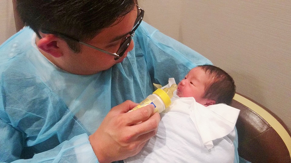 喺St.Paul每晚6-8pm都係親子時間,生完第一晚太晏無得見lu~不過我住4日3夜,仲有兩晚可以見,親子時間係畀BB嘅爸爸媽媽過嚟抱BB同餵奶,不過媽媽任何時間都可以過去BB房,所以親子時間都係爸爸嘅餵奶實習班,媽媽就負責影相!XD