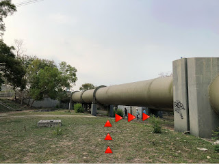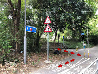 由上水站B出口作起點,往右沿天橋直走會來到分岔路口,往右邊的一條小徑直走以後,再往右走會看到以上圖片的路徑~