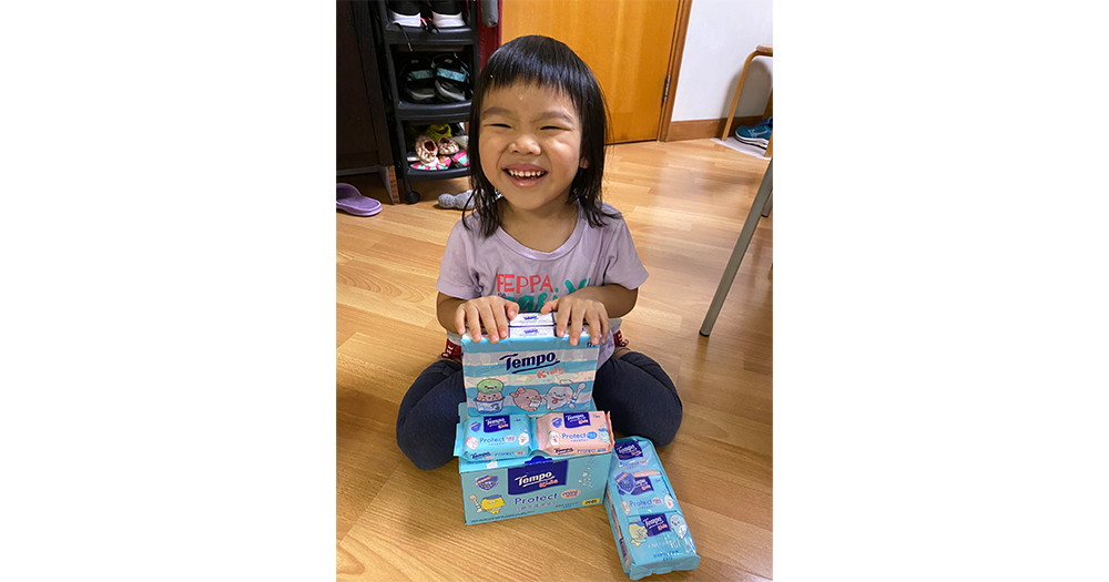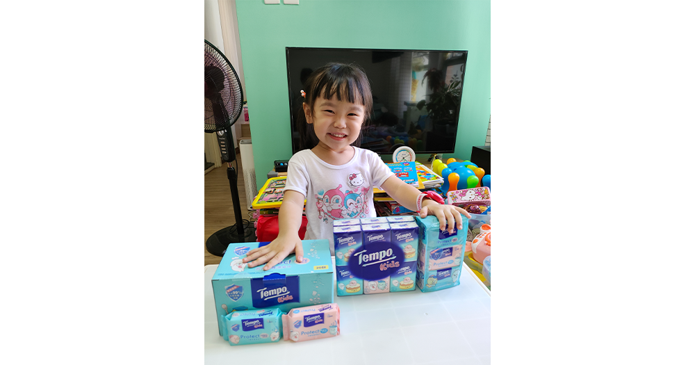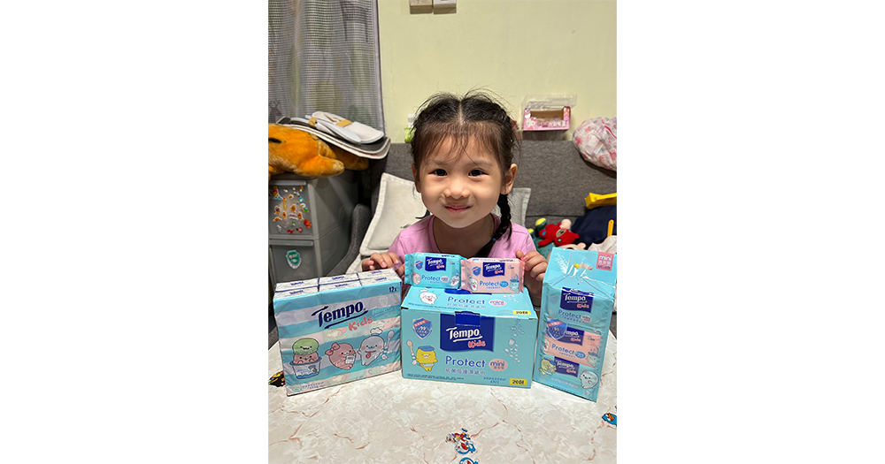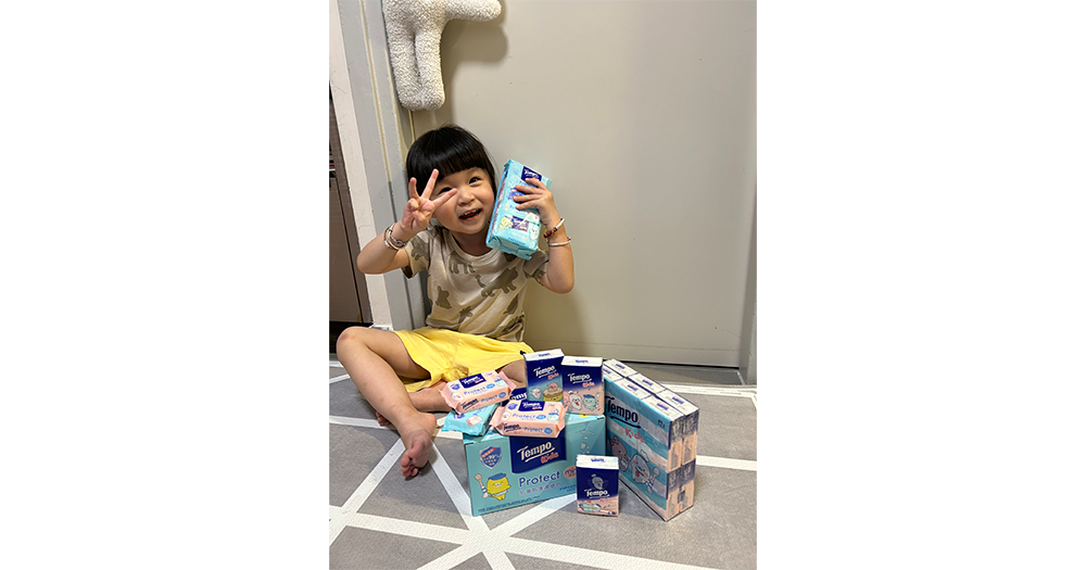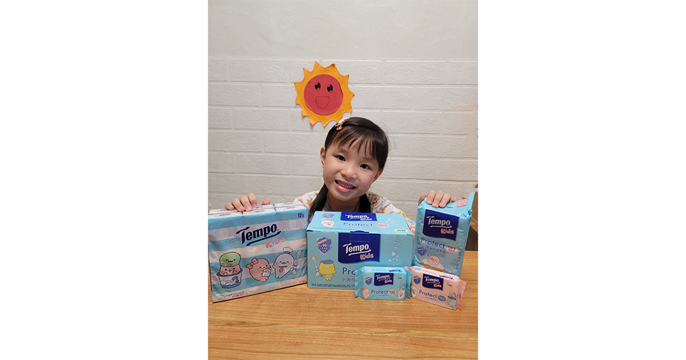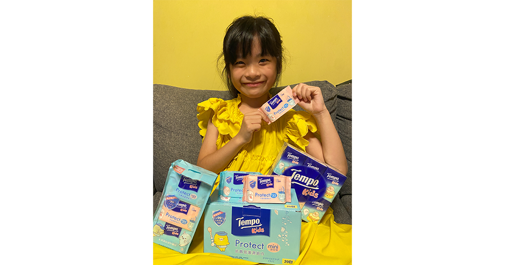 Kwok Ho Yee(媽咪)/Wong Theia (囡囡):就快九月開學,我會準備好 Tempo Kids Protect 抗菌濕紙巾迷你裝 及Tempo Kids紙手巾 各一包,俾囡囡帶返幼稚園用。每包Tempo Kids 都同囡囡手掌一樣大小,放喺書包唔怕重,放喺校服唔驚漲,細細包又可愛又方便攜帶,囡囡都好樂意帶返學校用。