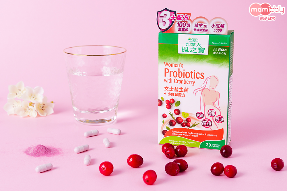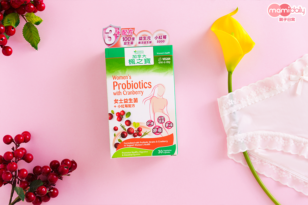 加拿大楓之寶推出專為女性而設的全新產品——「女士益生菌+小紅莓配方」!採用獨家3+配方,特選3種活性益生菌:「私密專屬菌株」嗜酸乳桿菌La-14、鼠李糖乳桿菌LactoB HN001及羅伊氏乳酸桿菌,益生菌數量高達100億!有效平衡私密處微生態、維持弱酸性環境、有助抵抗壞菌入侵、減少私密處分泌物及細菌黏附,同時助以調整身體代謝、提高免疫力、改善腸道功能、促進消化、紓緩排便不暢。