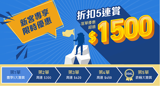 -yuu網購新客專屬5連賞 超過$1500優惠