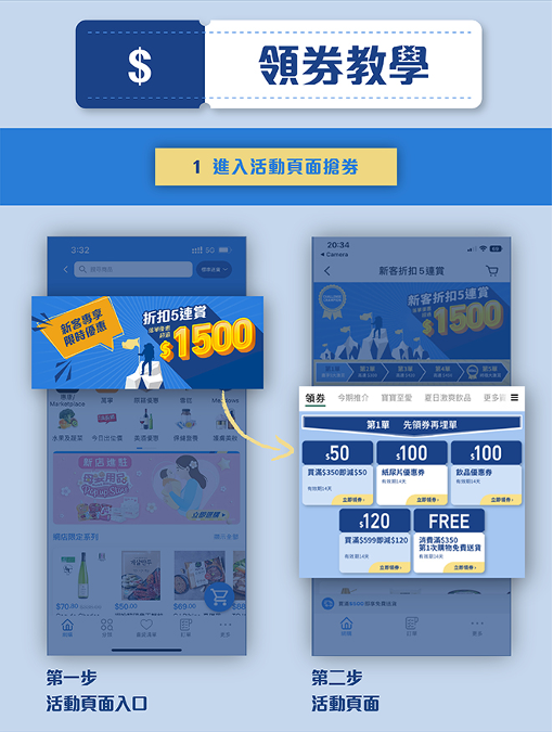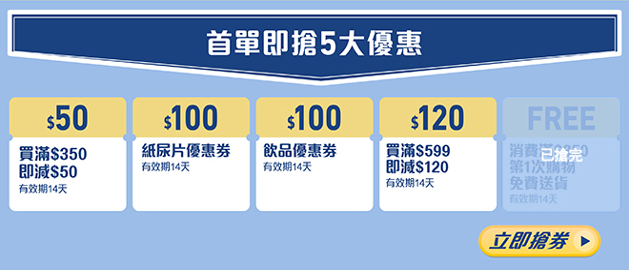 要是你還不是yuu會員,今次是機會了!「11.11超級慶典」登記成為新會員即可享新客專屬折扣5連賞,足足有高達$1,500優惠券!首單領券買滿$350即減$50,滿$599即減$120,相等於8折優惠,勁抵!