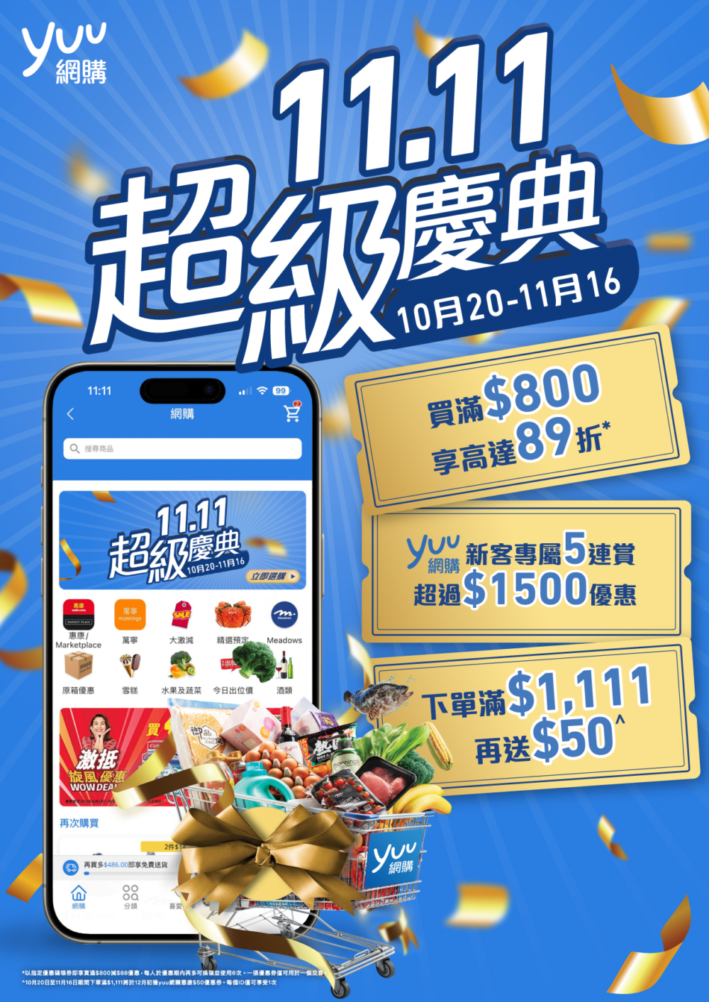 yuu 網購11.11超級慶典仲有大量優惠多到數都數唔完,馬上大大力掃貨啦!