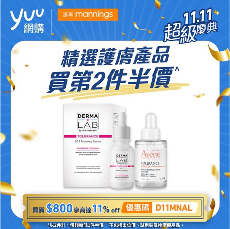 即日起至11月16日於yuu 網購11.11超級慶典,上yuu 網購於萬寧買精選護膚產品即享第2件半價優惠!