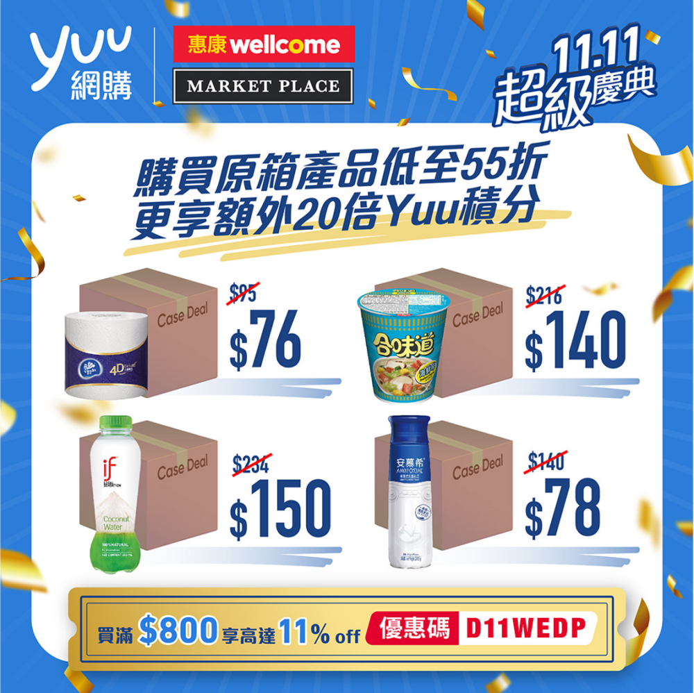 即日起至11月16於yuu 網購11.11超級慶典,上yuu 網購於惠康買精選原箱貨品即可賺20倍yuu積分!小編心水推介: