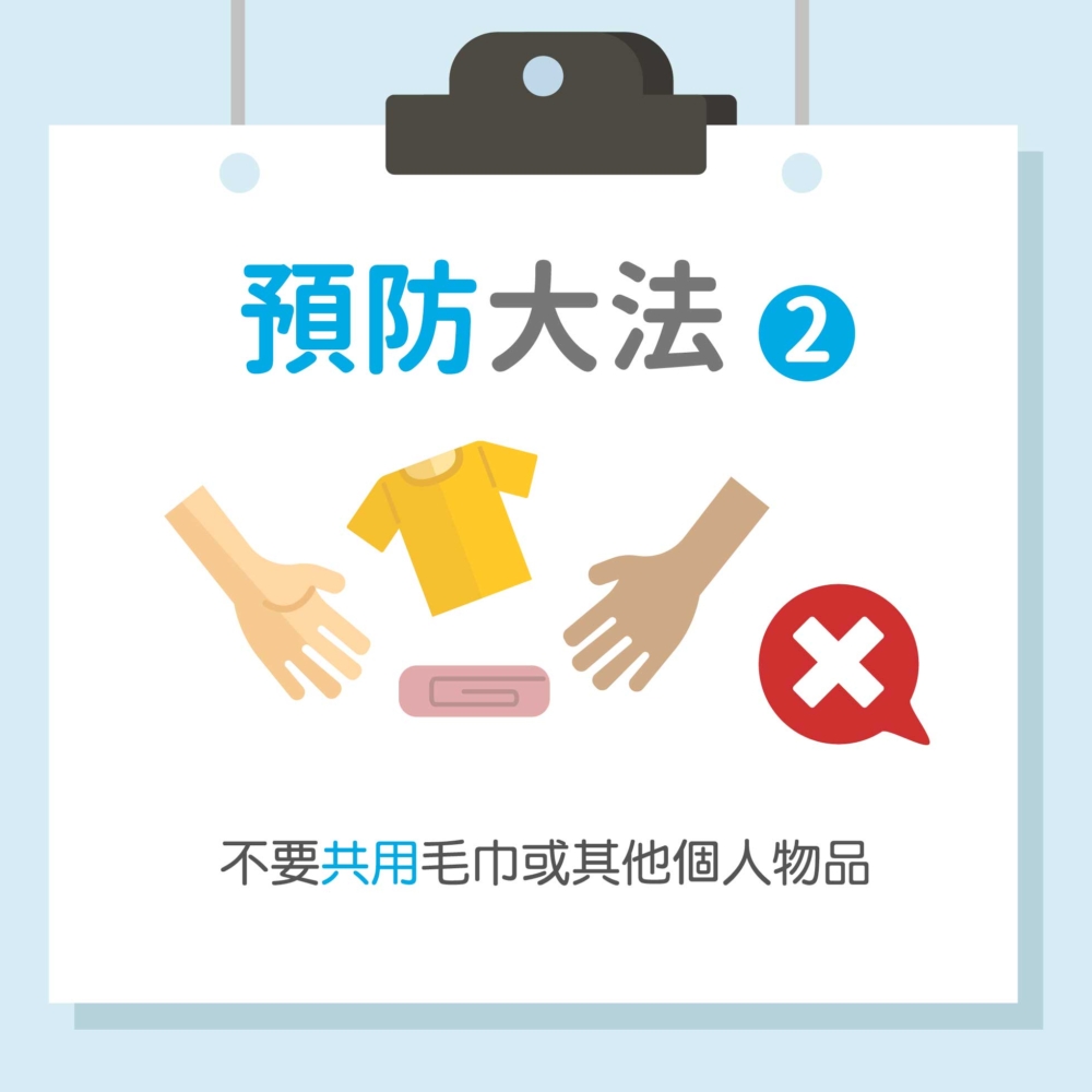 ‧不要共用毛巾或其他個人物品。