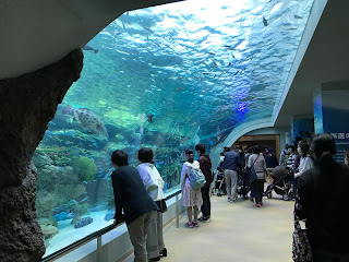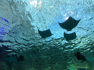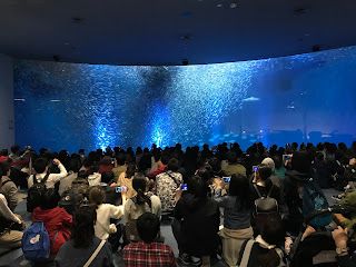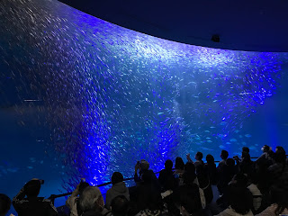 日本之海 - 黑潮大水槽(必看沙丁魚餵食秀):由3萬5千多條沙丁魚群聚在一起,形成相當壯觀的景象,加上燈光效果,感覺超夢幻啊!
