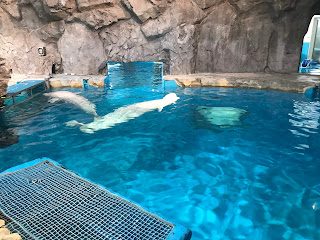 極光之海 - 白鯨池(白鯨):白鯨是一種生活於北極地區海域的鯨類動物,在這裡您除了可以觀察到白鯨的獨特生態外,更有一個模擬北極熊洞穴,可讓旅客鑽出鑽入。