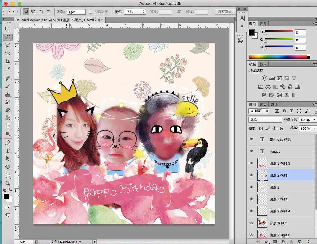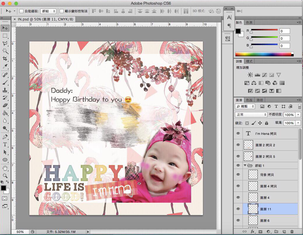 再用photoshop 將素材包入面合適嘅圖併埋一齊同加字