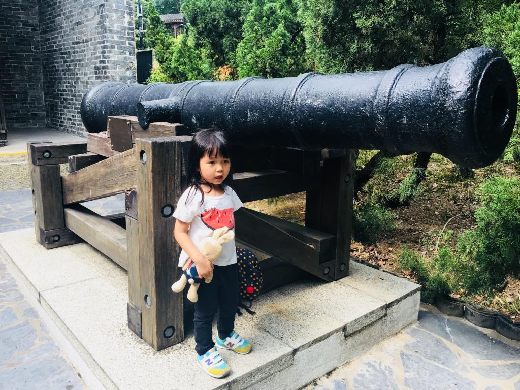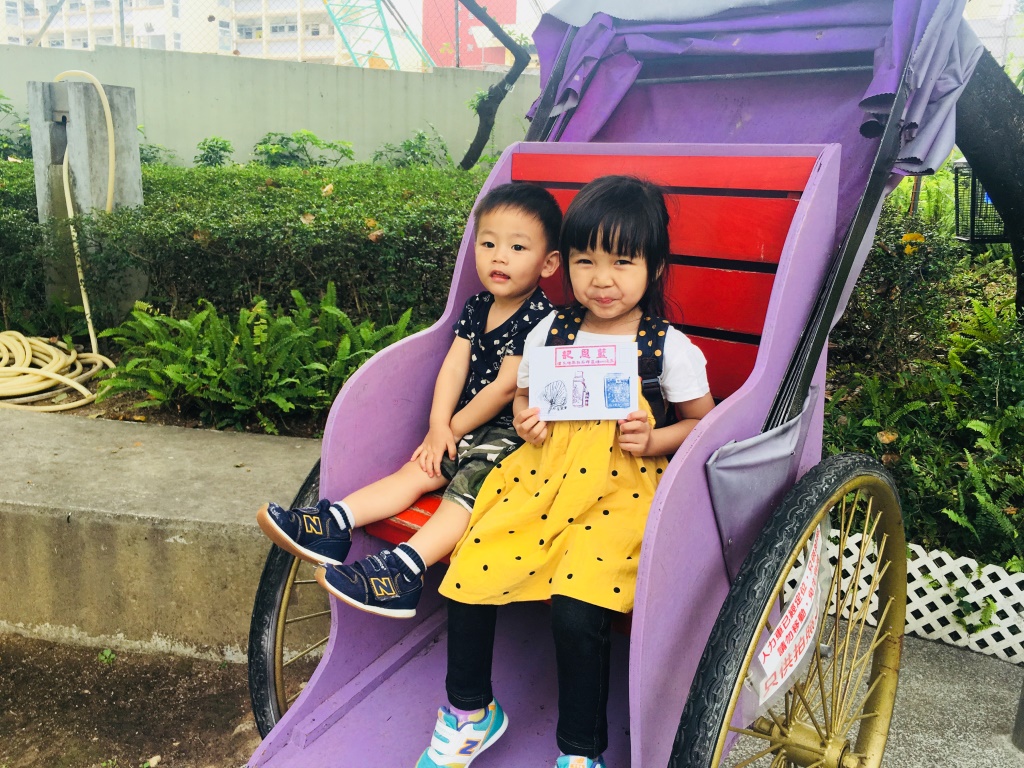 走到屋外,見到另一個景點,一輛停泊嘅人力手拉車,遊客可自由拍照,再往盡頭望,再發現到一個特別嘅小花園,據說係明陣,小朋友跟住明陣走,玩得好開心呢!