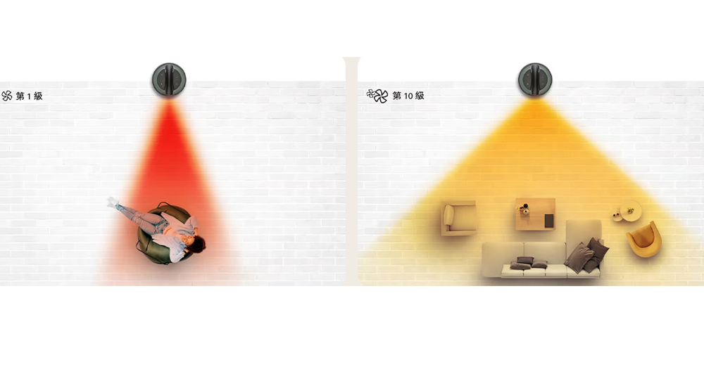 三合一空氣淨化風扇內置冷風及暖風功能,真正做到「冬暖夏涼」!遇上天氣凍,想一室溫暖,只要開啟暖風模式,9分鐘內即刻將室內溫度提高5˚C。三合一空氣淨化風扇同時備有1至10級風力選擇,第1級高溫熱風較集中,適合一人獨享,第10級則將溫度相對低的暖風蔓延至整個區域,全家共享都沒問題。