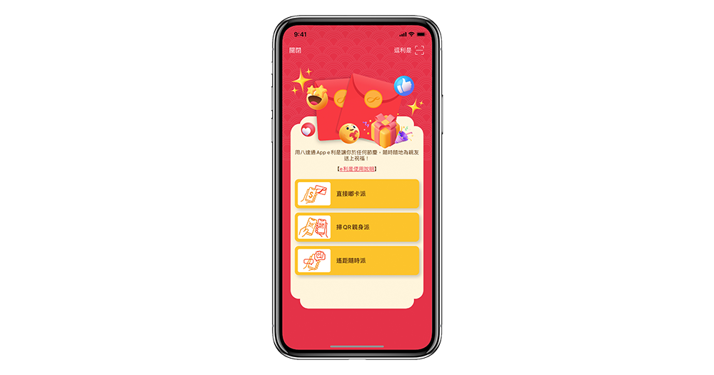 你可以自訂「e利是」唔同金額同數量,用抽獎方式取機派發「大利是」,邊玩邊派更驚喜,無論親友拜年見面定係開工向同事派利是,只要對方掃一掃 QR Code 即刻收到!%