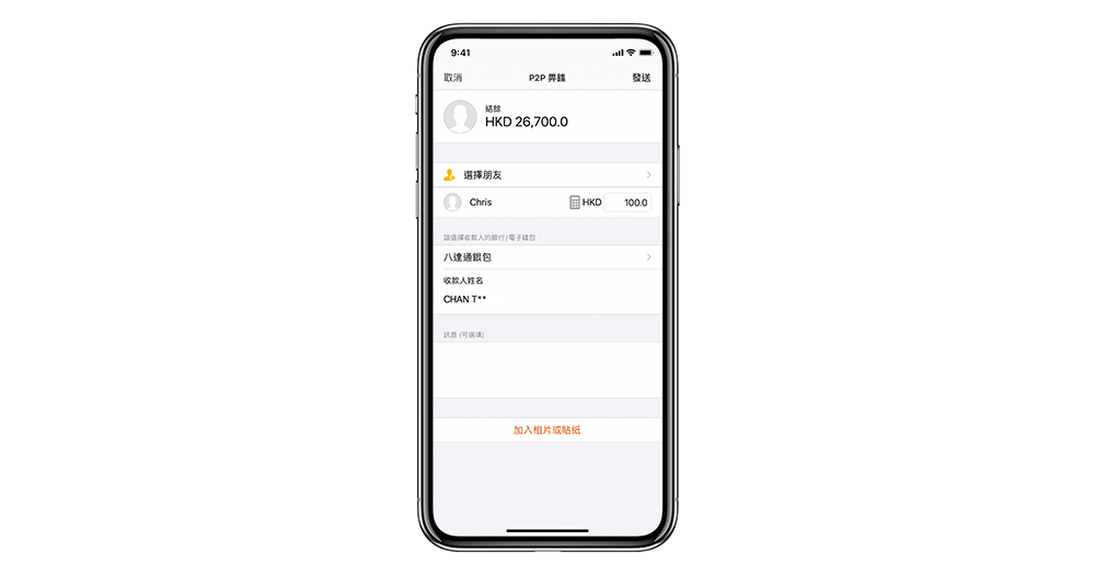 揀選「遙距隨時派」,選取指定收「e利是」親友後,輸入金額及貼圖,點選「發送」,對方就收到了。