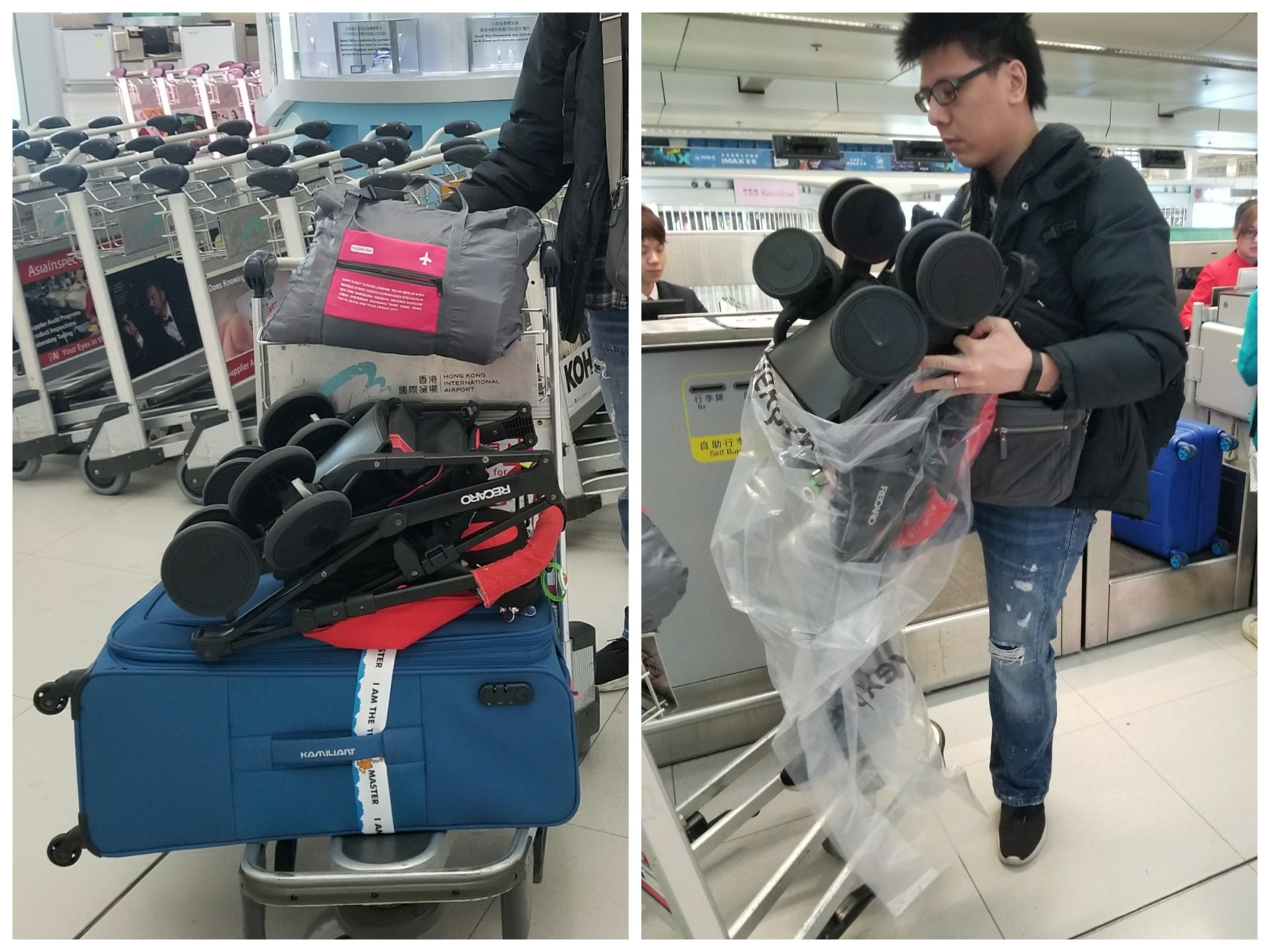 行李要寄倉,BB車寄倉要先放入大膠袋再交給職員。 當然你也可選擇在閘口前把BB車交給職員。