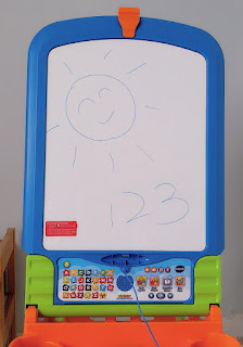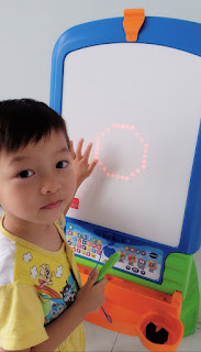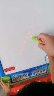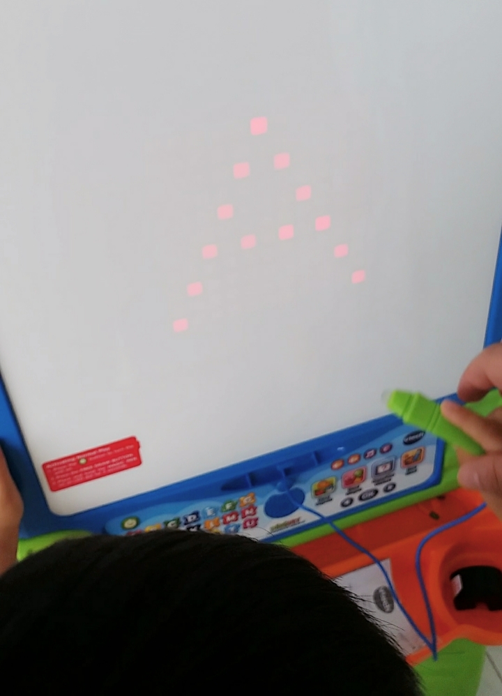 當中小b就最喜歡那個三合一創作畫板,常在畫板前,拿著魔術筆追踪電路板LED屏幕上的閃爍燈光,學習書寫字母。