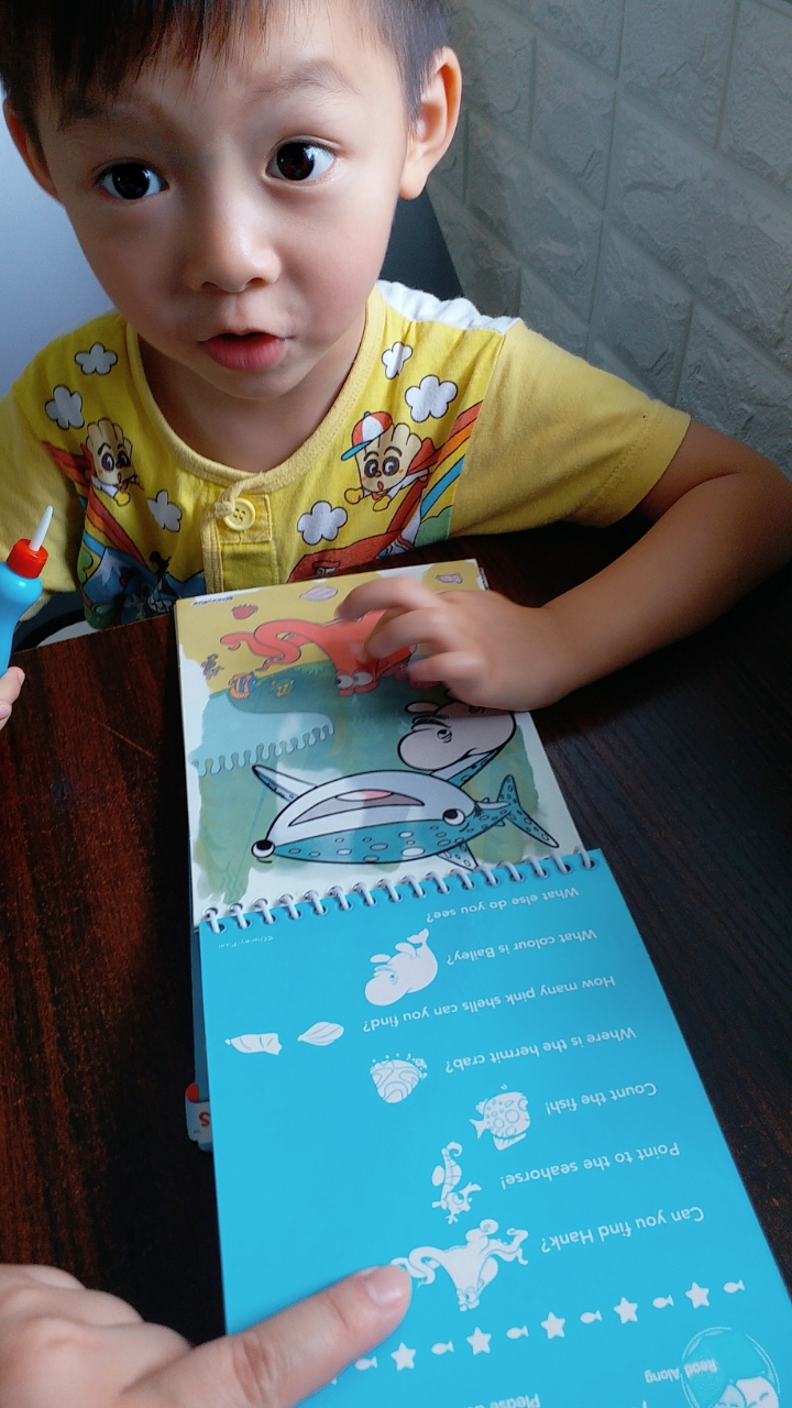將神奇筆注入水,在頁面上油呀油,令頁面變成色彩繽紛,水乾了仲可重覆再用。