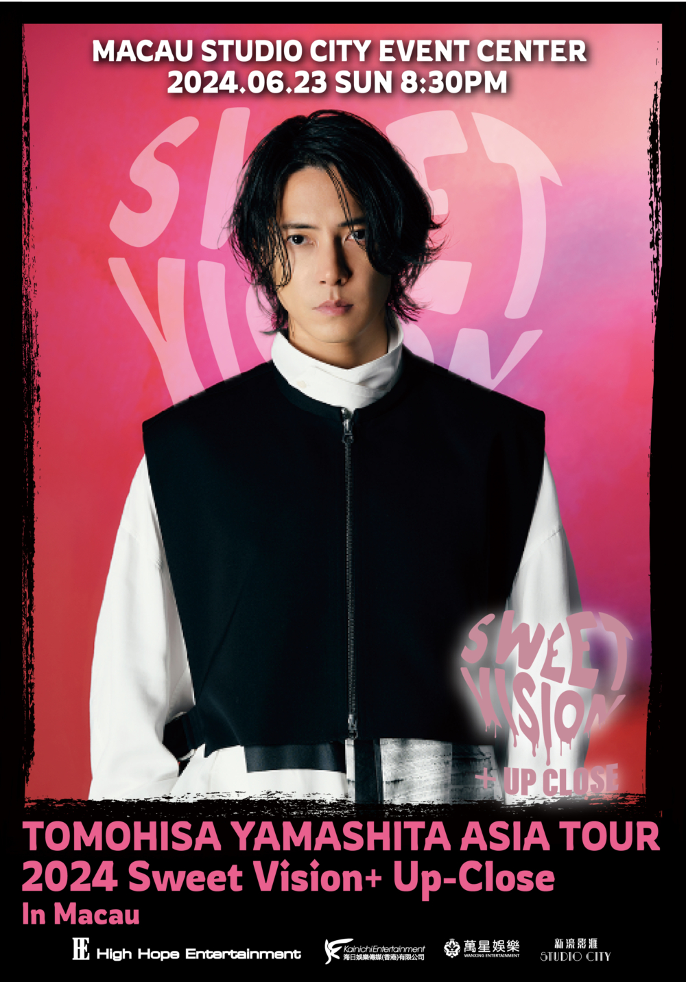 山P繼2023年舉行他獨立後的第一場個人演唱會「TOMOHISA YAMASHITA ARENA TOUR 2023- Sweet Vision -」後,將在澳門舉辦「TOMOHISA YAMASHITA ASIA TOUR 2024 Sweet Vision+ Up-Close」亞巡演唱會,精堪的演出令人期待!