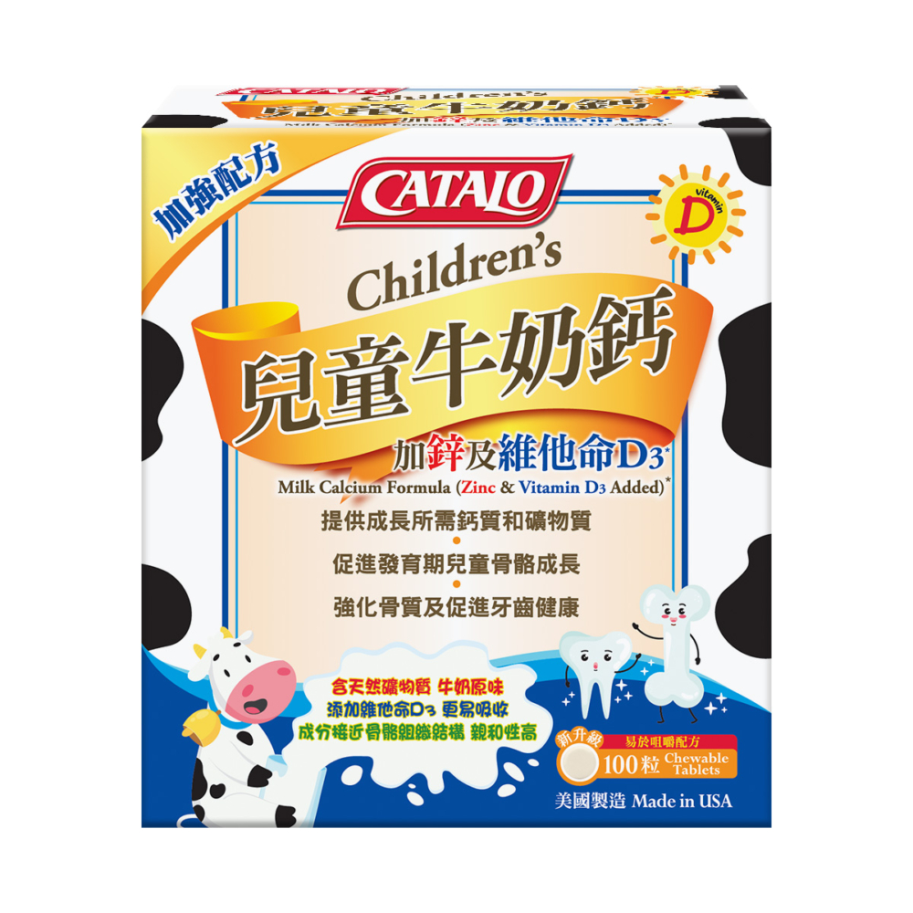支援小朋友骨骼生長及牙齒健康則可以選擇鈣質補充品,CATALO 兒童牛奶鈣加鋅及維他命D3加強配方採用專利成分TruCal®天然牛奶鈣 ,提煉自天然無污染特級牛奶,含有豐富鈣質及天然礦物質,成分極接近人體骨骼結構,經臨床實證易於吸收及生物利用率高,有效促進小朋友嘅骨骼發育成長;豐富天然礦物質包括鎂、磷、鋅亦可以改善小朋友骨骼發展,特別加入維他命D3,有助鈣質吸收。